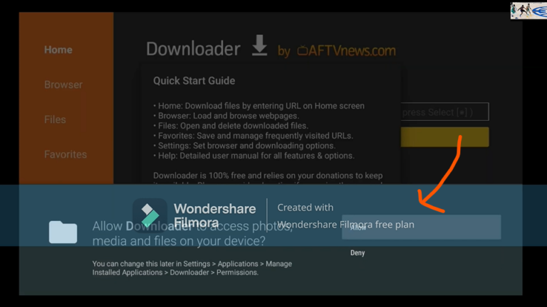 6) When you start the app for the first time, you must grant the downloader access to your file system. Select the option “Allow”.